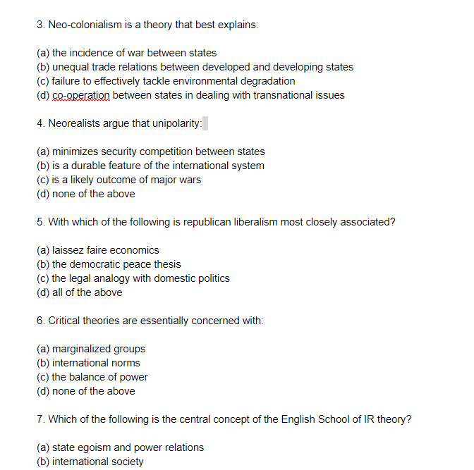 Solved 3 Neo Colonialism Is A Theory That Best Explains Chegg Com
